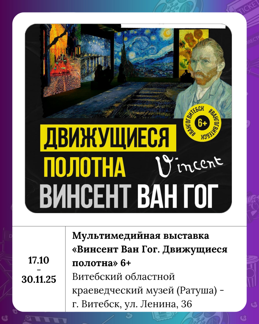 Впервые в Витебске в Ратуше начал работу уникальный мультимедийный проект «Винсент Ван Гог. Движущиеся полотна».