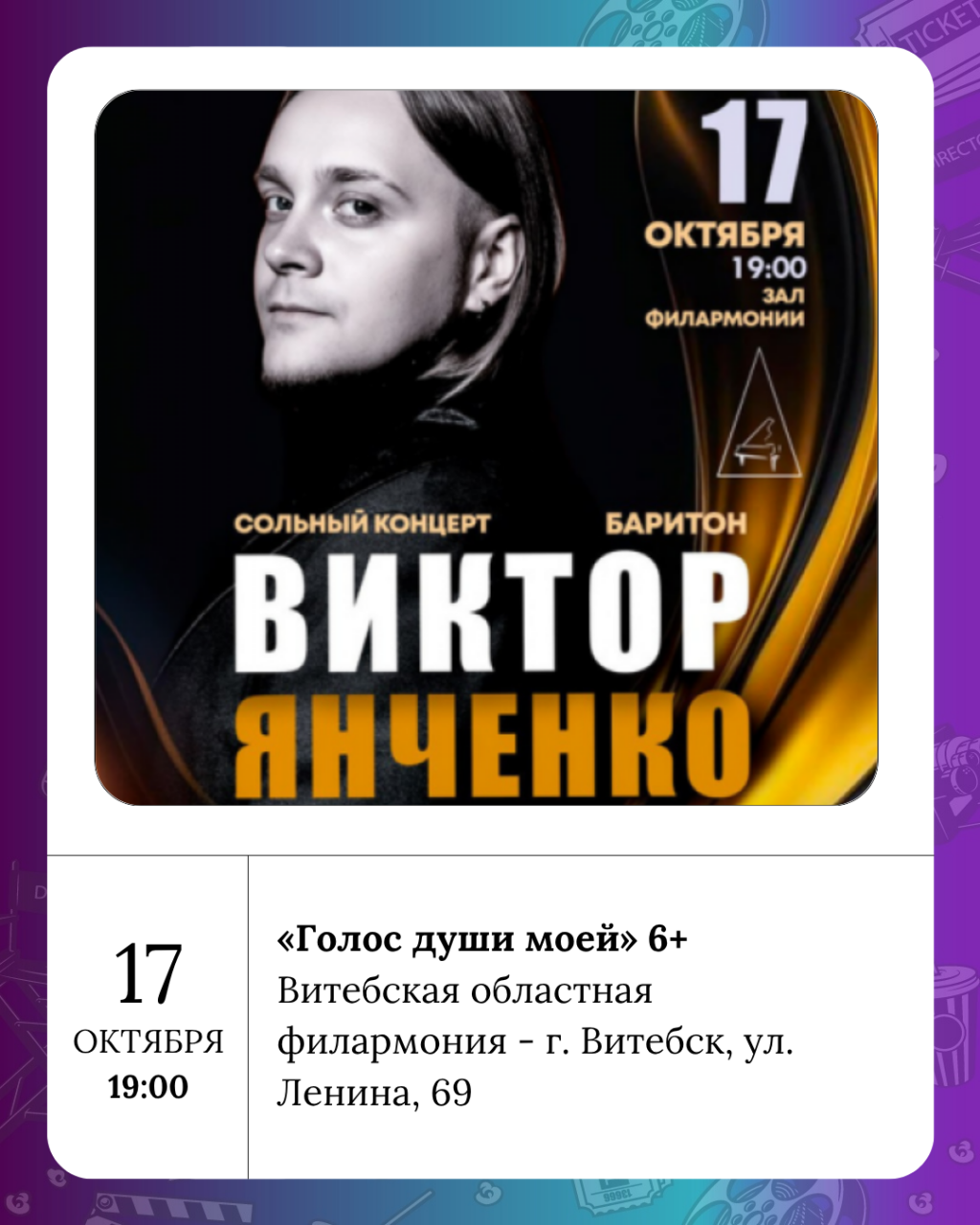 В витебской областной филармонии пройдет концерт Виктора Янченко «Голос души моей» 6+.