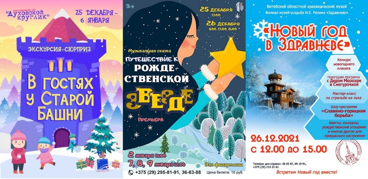 Витебский областной краеведческий музей приглашает 26 декабря с 12.00 до 15.00 всех вместе встретить Новый год! В Музее-усадьбе И.Е. Репина «Здравнёво» гостей ждут авторская новогодняя развлекательная программа с Дедом Морозом и Снегурочкой, игры, конкурсы, беспроигрышная лотерея, выступления участников клуба славяно-горицкой борьбы, мастер-класс по стрельбе из лука, фотоквест «КлёВО в «ЗдравнёВО», комментарии по дому-музею, угощения и зимние развлечения! Вам предложат узнать, кто такой Старичок Здравнёвичок, ощутить магию театра теней и отправиться в новогоднюю сказку на конной тройке! На мероприятие в «Здравнево» будет организован бесплатный подвоз музейным транспортом с конечной остановки «Руба» и обратно по окончании праздника. Время подвоза будет опубликовано дополнительно в музейных группах в соцсетях.