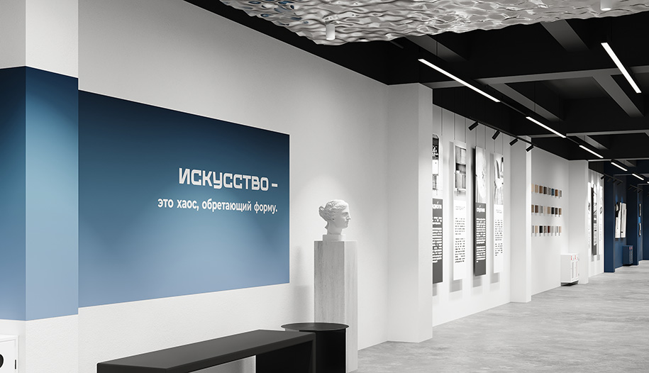 В ИНТЕРИУМЕ предусмотрены атмосферные зоны: лаунж с виниловым проигрывателем, выставочный зал, лекторий и фитнес-центр.