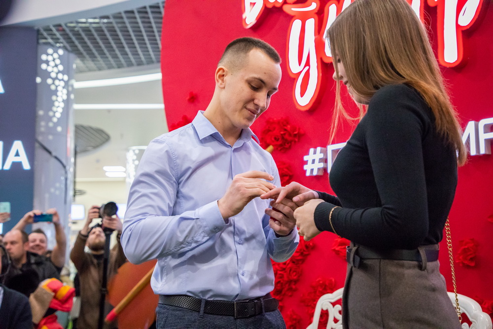 И кульминация – в фотозоне с сердечком в главном атриуме парень делает предложение выйти замуж ничего не подозревающей девушке. И ее скромное «Да!» тонет в громе аплодисментов всех присутствующих.
