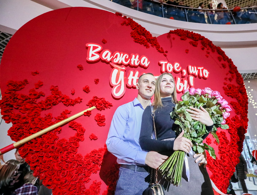 Особая заслуга организаторов – праздничные фотозоны. Их было пять – на всех этажах комплекса. Главная – прямо в атриуме, с огромным сердечком и трогательной надписью, к слову, по-белорусски – «Галоўнае тое, што ўнутры!». Выстраивались очереди, чтобы сфотографироваться! И не только из влюбленных парочек – девчонки снимали друг друга и не скрывали, как же здорово они выходят на фотографиях. Еще бы! Весна и праздник влюбленности украшают девушек!