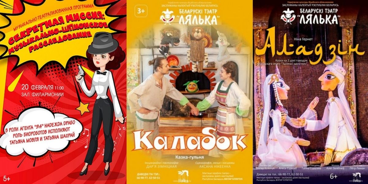 Белорусский театр «Лялька» предлагает вниманию юных зрителей и их родителей спектакли выходного дня «Колобок» субботним утром в 11.00 и «Алладин» воскресным утром в 11.00. Все детские мероприятия Витебска >>
