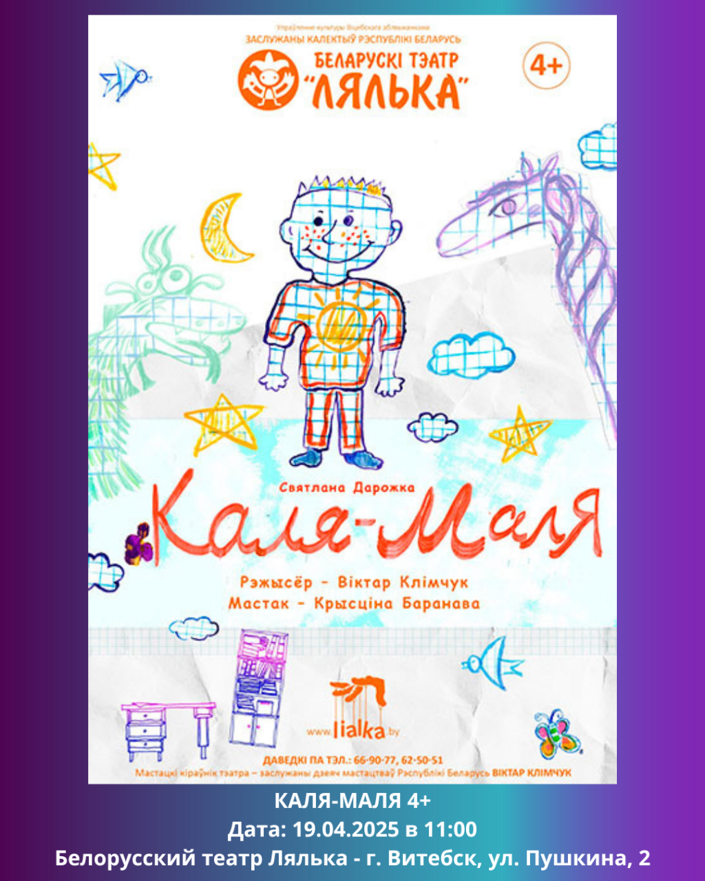 Белорусский театр Лялька покажет Каля-Маля 4+ также в субботу, в 11.00.
