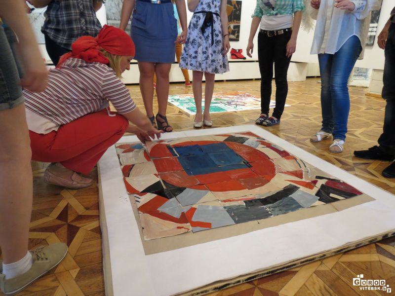 – Наша композиция составлена из квадратов различной цветовой гаммы, расположенных в определенном порядке, – рассказала преподаватель колледжа Наталья Аниськович. – Самая богатая коллекция проунов Лисицкого, в том числе и оригинал этой композиции, хранится в музее в Нидерландах.