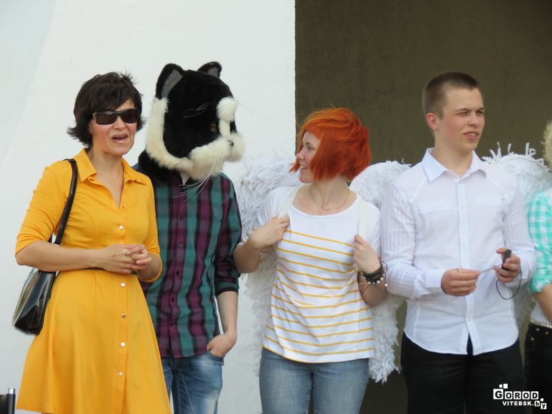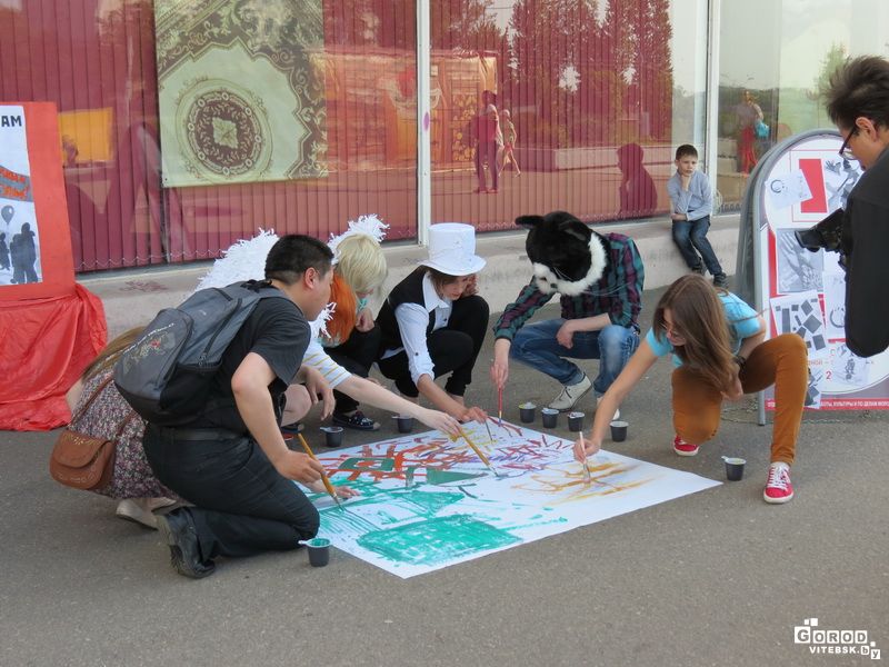 В знак преданности идеям супрематизма учащиеся и выпускники витебского технологического колледжа в течение нескольких минут воссоздали один из проунов Лазара Лисицкого.