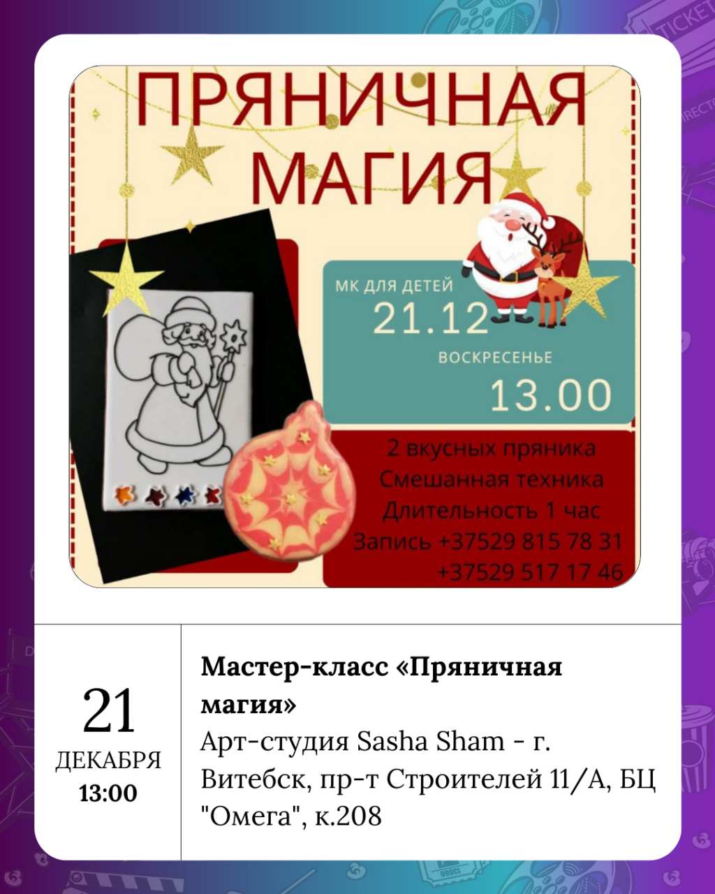 Пусть эти дни подарят вам вдохновение и ощущение приближающегося волшебства. Витебск умеет удивлять — концерты, выставки, уютные встречи и огни на улицах создают настроение, которое хочется сохранить до боя курантов. Хороших вам выходных и яркой подготовки к Новому году!