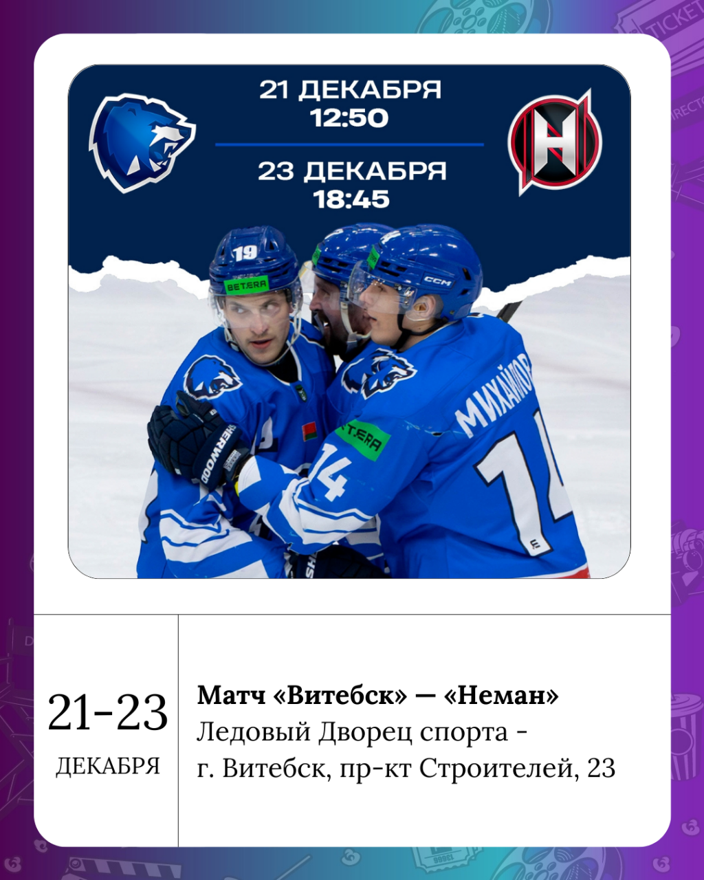 «Витебск» принимает «Неман» в «Ледовом» 21 и 23 декабря. Болеем за наших!