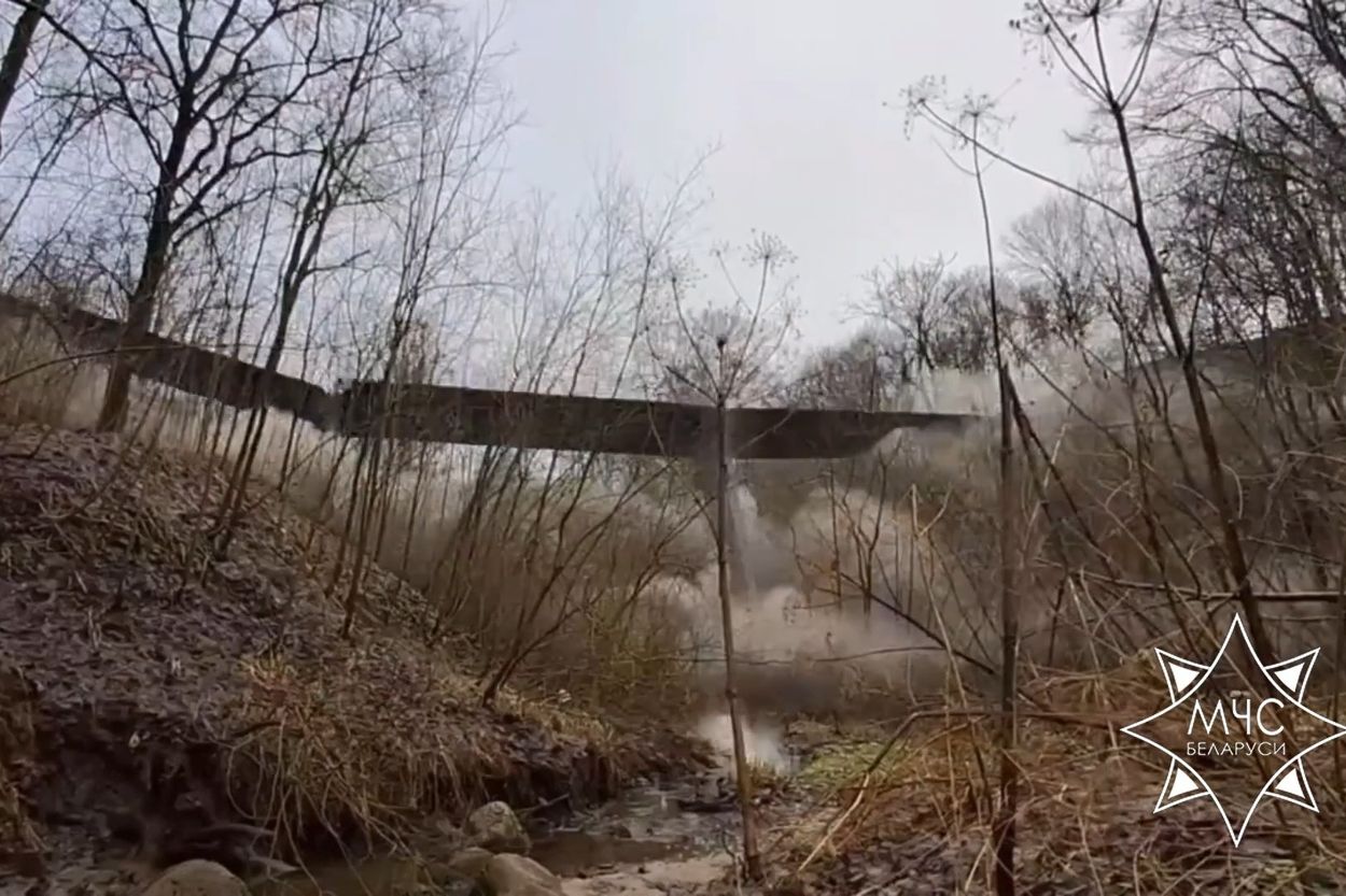 Взрывотехники пожарного аварийно-спасательного отряда «Витязь» провели успешные работы по взрыву неэксплуатируемой (аварийной) эстакады магистральной сети канализации в Витебске. Источник vitbichi.by.