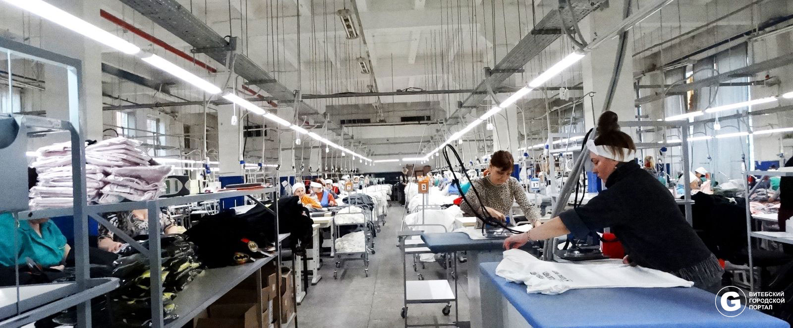 А знали ли вы, что частично этот российский бренд отшивается в Беларуси. И в том числе в Витебске. Работает цех уже 2 года. Для каждой модели сюда приходят уже раскроенные детали, фурнитура и другие необходимые комплектующие. На производственном участке работает больше 100 человек, но бригада нуждается в пополнении.