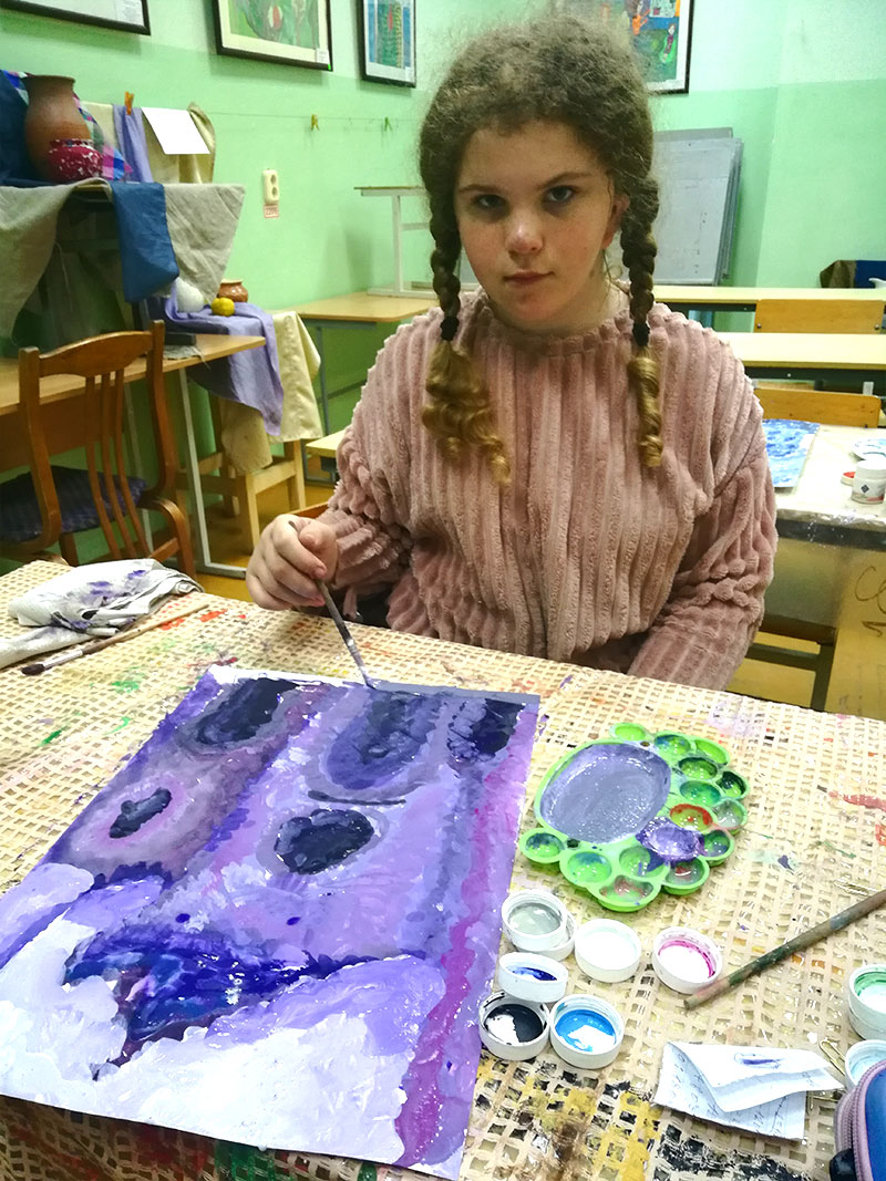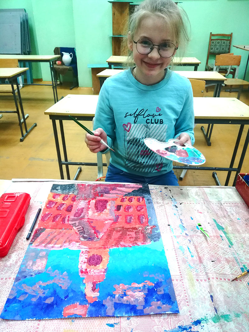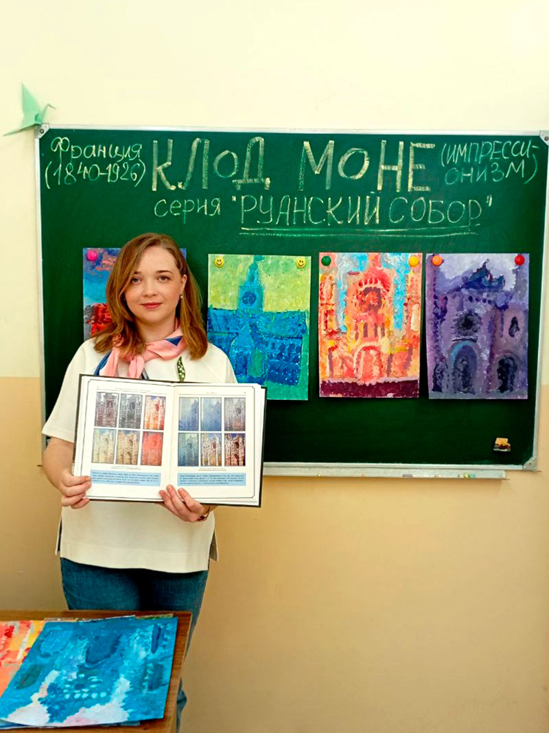 Екатерина Ивановна познакомила своих учеников с творчеством живописца, который стремился запечатлеть изменения света и атмосферы в различное время суток и в разные сезоны.