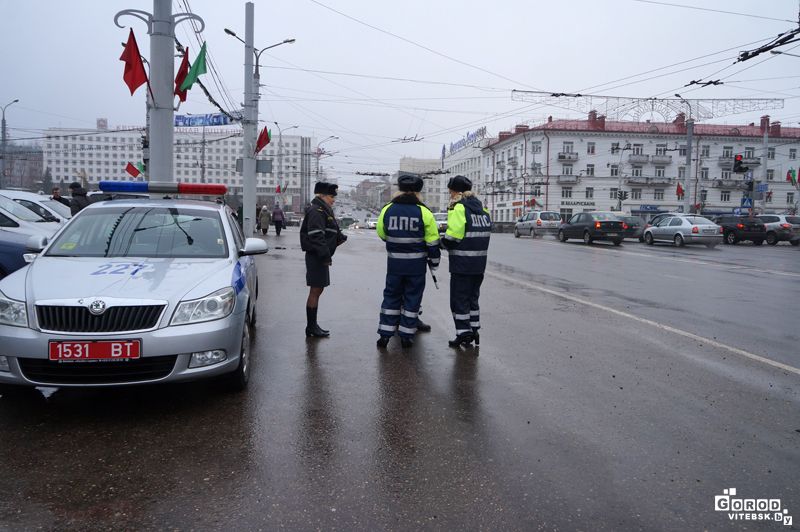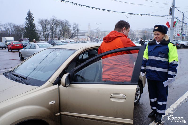 В честь празднования 23 февраля – Дня защитника Отечества сотрудницы ГАИ Витебска организовали поздравление для мужчин-водителей на пл. Свободы.