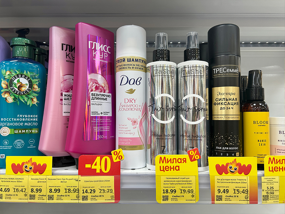 Также по 30 июля можно выгодно приобрести товары для ухода за лицом и телом. Среди WOW-предложений – краска для волос Gliss Kur за 11,99 руб., «Палетт» – 5,99 руб., шампунь Head & Shoulders, 400 мл – 12,99. Лак и мусс для волос TRESemm можно приобрести за 9,49. Текстурирующий спрей от Tashe – 17,99 руб, а их знаменитый пилинг для кожи головы – 10,99 руб. Женский дезодорант Deonica отдают за 4,29 руб. Упали цены и на гели для душа: Solzao, 400 мл, теперь стоит 9,99 руб., а Dove, 610 мл – 11,29.