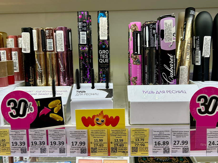 Косметику Bell, Lavelle и Belordesign можно купить со скидкой 50%, L'Oreal Paris – 40%, а Eveline и Parisa – 30%. Тушь для ресниц Vivienne Sabo Excentrique с эффектом объема и удлинения обойдется всего лишь в 11,99 руб.