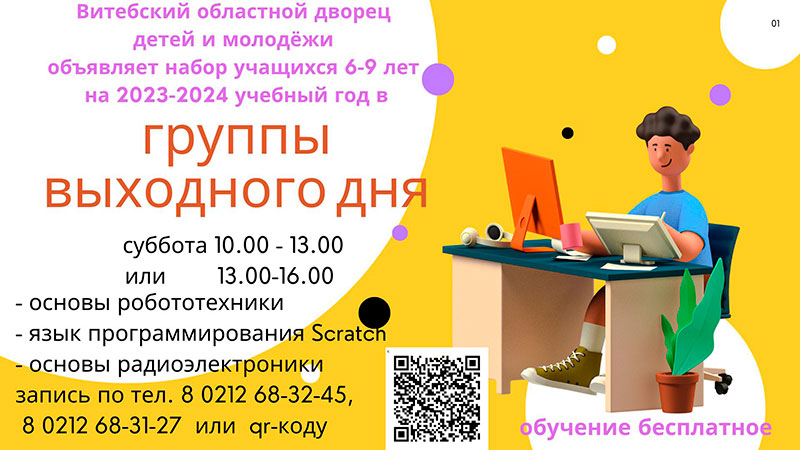 Витебский областной дворец детей и молодёжи приглашает детей в возрасте 6-9 лет для обучения в 2023-2024 учебном году в группах выходного дня.