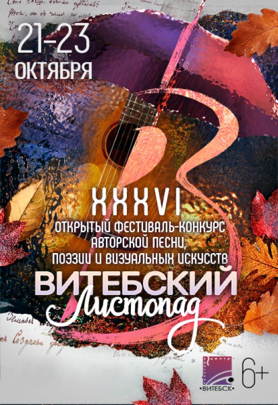 ХХХVI открытый фестиваль-конкурс авторской песни, поэзии и визуальных искусств «ВИТЕБСКИЙ ЛИСТОПАД» стартует уже 21 октября. С 21 по 23 октября ждёт на свои мероприятия и творческие встречи поклонников городской культуры. Фестиваль будет проводиться по трём направлениям: авторская песня, поэзия и визуальное искусство. Приходите за вдохновением и осенним настроением! Полная программа фестиваля тут>>