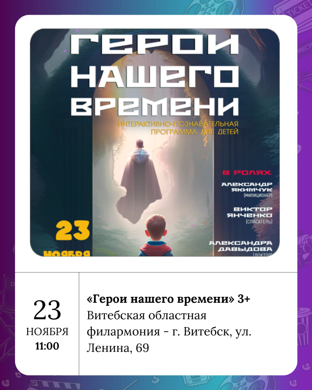 В филармонии в субботу деток ждут послушать сказку «Мистер крот познаёт мир» 3+, а в воскресенье - принять участие в интерактивной программе «Герои нашего времени» 3+.