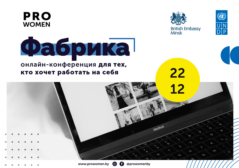 22 декабря некоммерческая организация для девушек-предпринимателей ProWomen By в партнерстве с ПРООН в Беларуси проведет онлайн-конференцию для фрилансеров и предпринимателей. Это итоговое мероприятие «Фабрики» — бесплатного онлайн-интенсива по работе на себя, который за два месяца прошли 90 женщин.