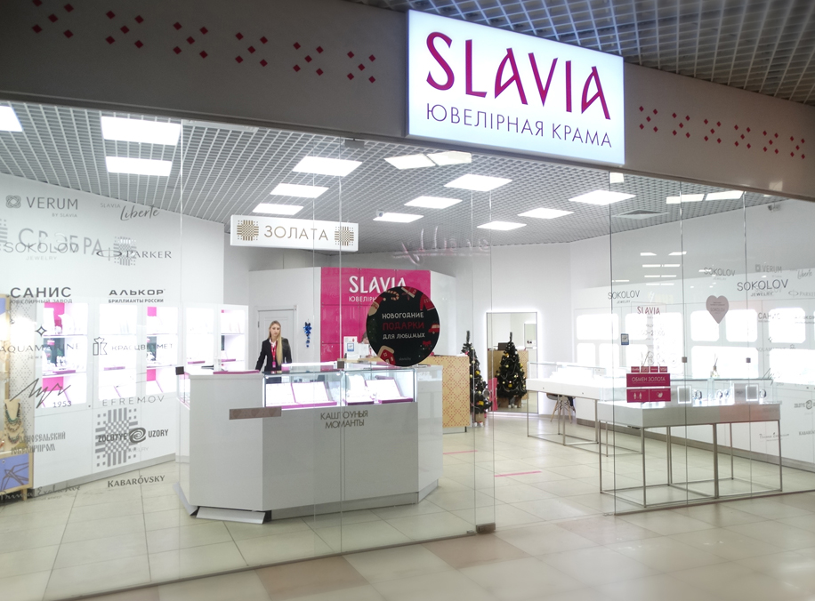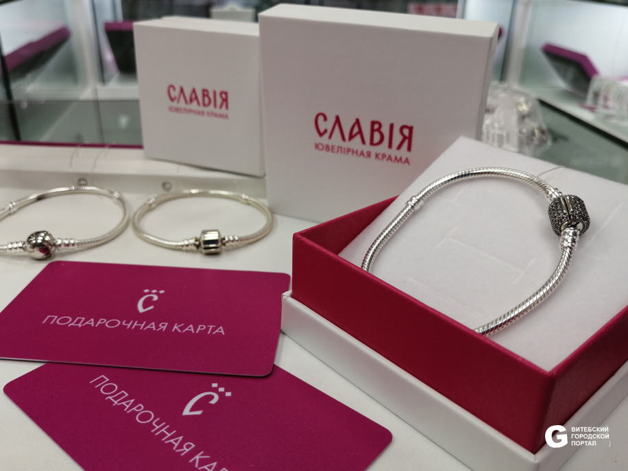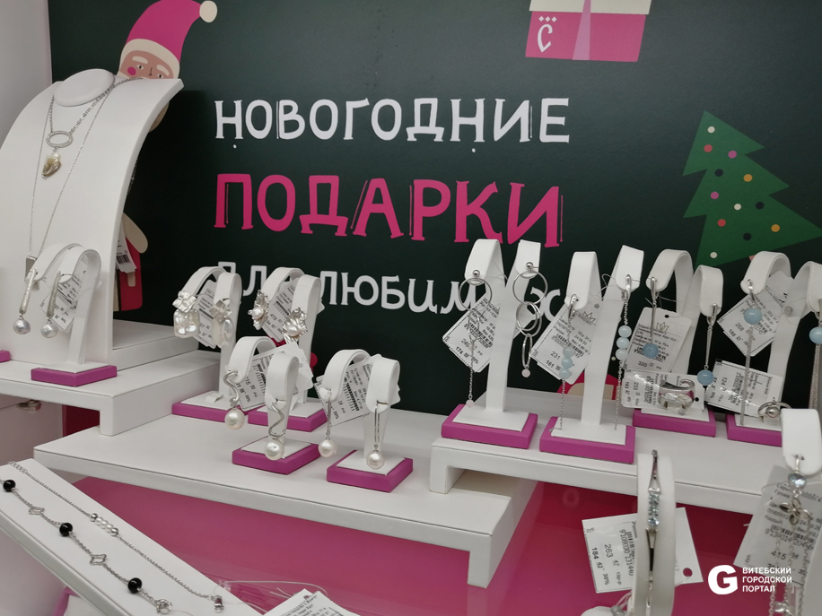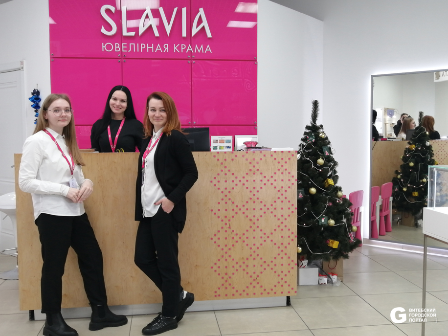 Магазины ювелирной сети СЛАВИЯ представлены в 30 городах Беларуси, один находится в Витебске, в ТЦ «Трио». Здесь мы и будем искать новогодние подарки для любимых.