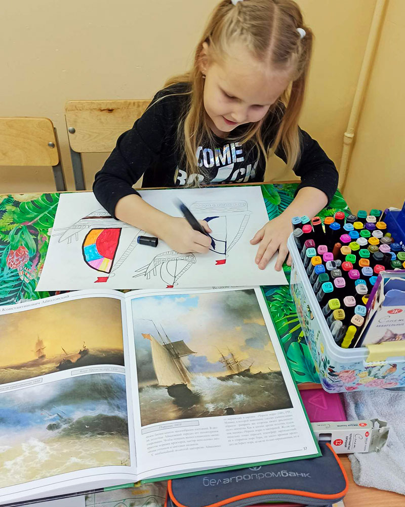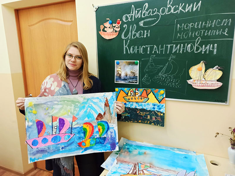 Творческая мастерская “Маладик” знакомит своих учеников с морскими пейзажами Ивана Айвазовского, который прославился как художник - маринист. Слово «марина» означает картину, изображающую морской вид. Маринист — художник, изображающий море.