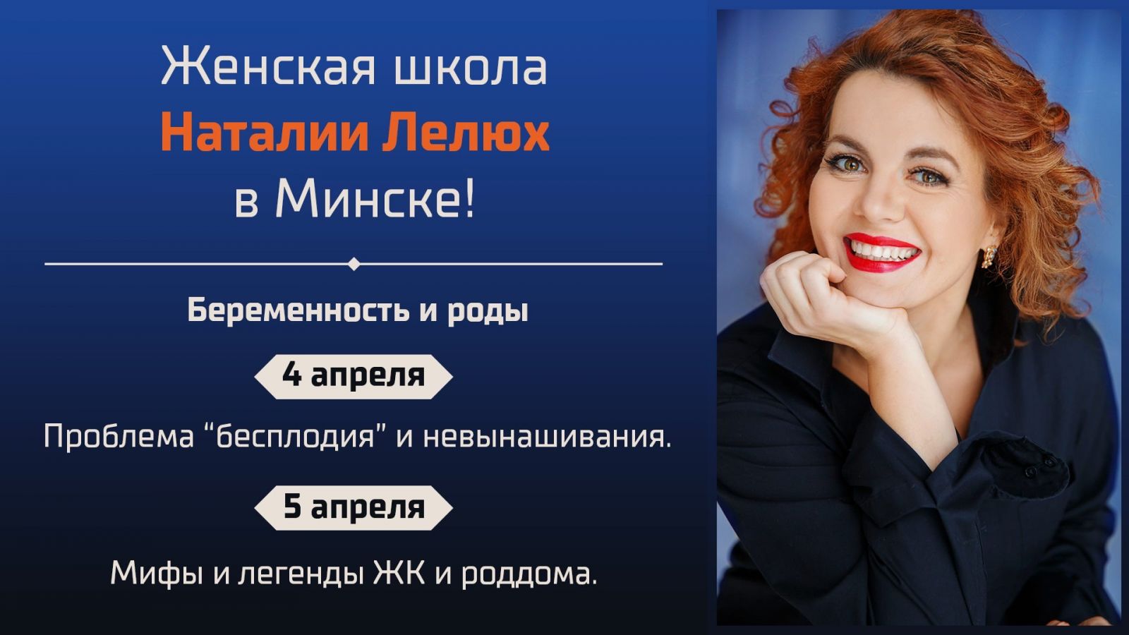 В рамках двухдневных семинаров, которые посвящены вопросам «бесплодия», невынашивания, а также мифам о беременности и родах, Наталия Лелюх (Украина) расскажет о важных особенностях организации беременности и родов. Особенно ценно, что встречи пройдут в «живом» формате - 40% времени отведено ответам на индивидуальные вопросы.