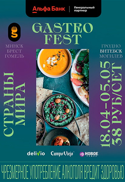 Республиканский фестиваль Gastrofest проходит в Витебске. По 5 мая заведения города представляют своим гостям оригинальные сеты. Стоимость фестивального предложения в заведениях Витебска составляет 38 рублей.