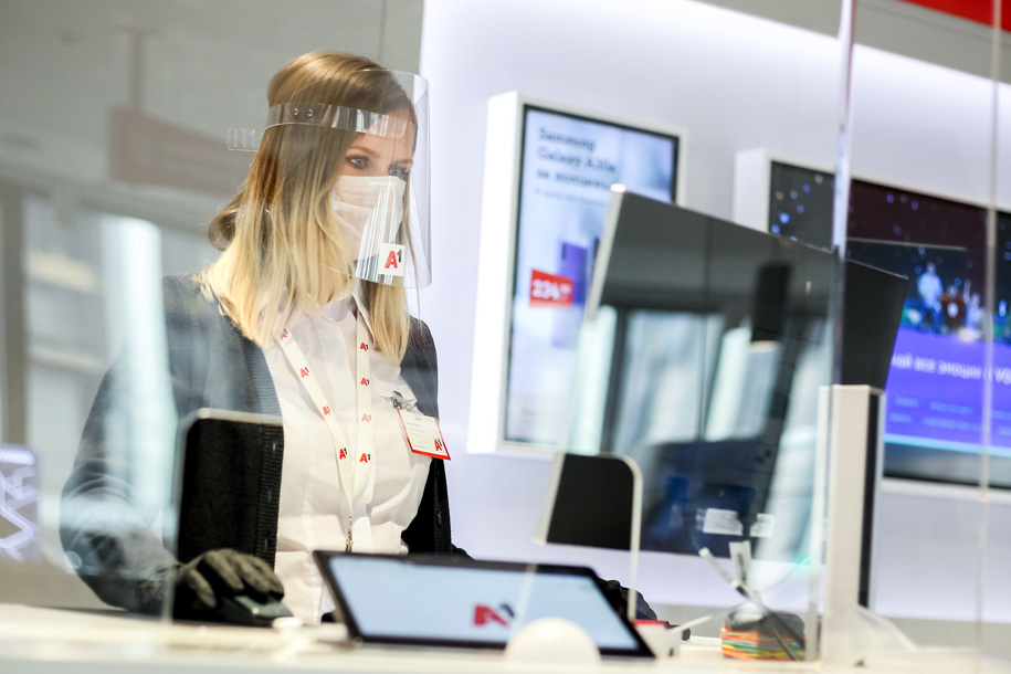 Впрочем, бывают и такие вопросы, которые самостоятельно или через дистанционные каналы обслуживания не решить. Например, обязательного визита в офис требуют такие ситуации, как замена SIM-карты, переоформление своего абонентского номера на другое лицо, перенос номера в сеть А1.Поэтому большинство магазинов А1 по всей Беларуси продолжает работу – но с учетом требований времени. Чтобы обезопасить сотрудников и посетителей, во всех магазинах проводится антисептическая уборка, а на входах установлены дозаторы с дезсредствами. Консультанты и специалисты по работе с клиентами работают в масках и перчатках, пользуются защитными щитками для лица и средствами для обработки рук и поверхностей. А для дополнительной защиты рабочие места оборудованы защитными экранами из плексигласа.