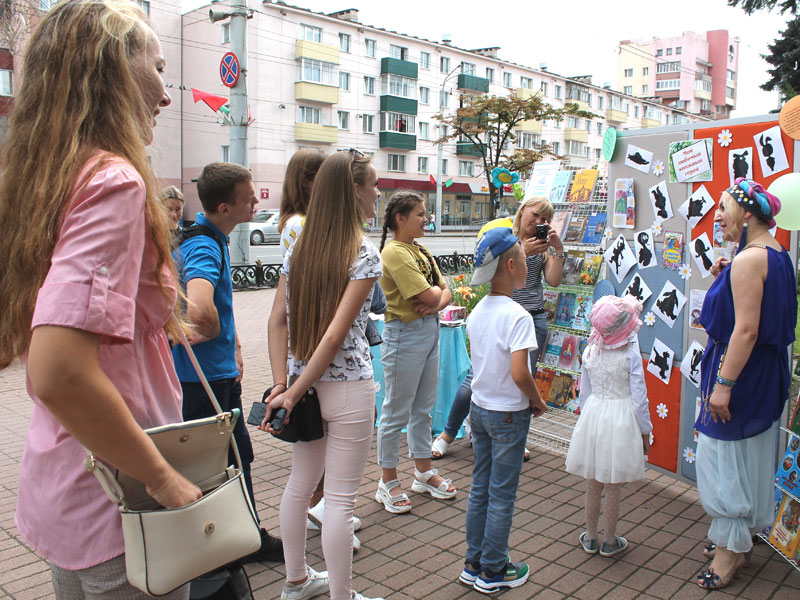 Сквер перед областной библиотекой в дни фестиваля «Славянский базар в Витебске» стал местом проведения интерактивных социокультурных, литературно-музыкальных и игровых программ. Здесь развернулась библиотечная площадка «Читающий город».
