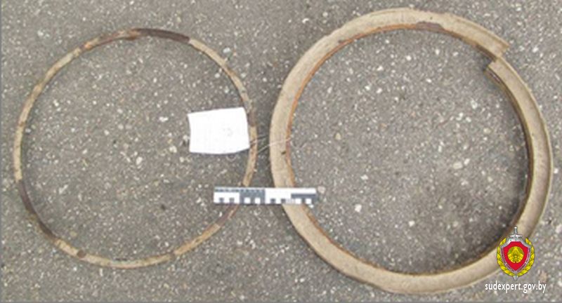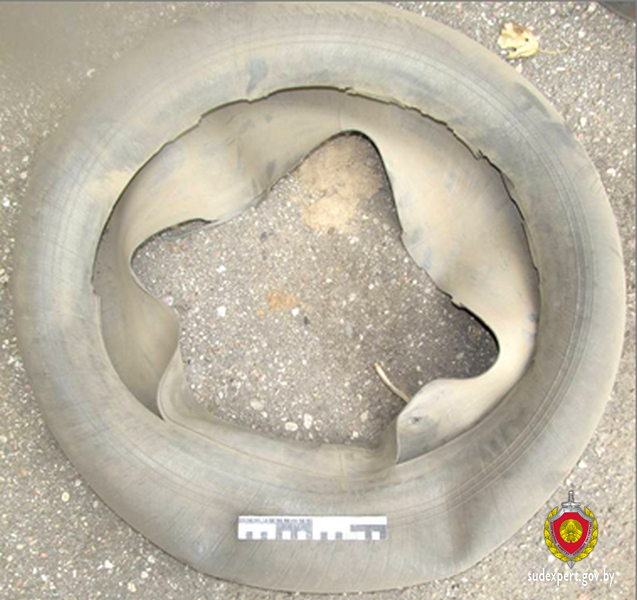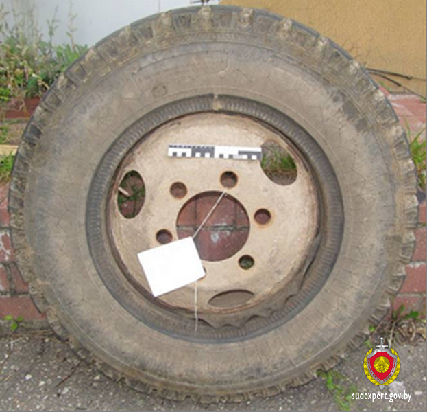 По данному происшествию в УГКСЭ по Витебской области была назначена автотехническая экспертиза. Согласно заключению эксперта, причиной резкой разгерметизации колеса стало ослабление прочности наружной стороны обода диска, вызванное глубоким коррозированием металла. Рост давления в камере вызвал напряжение в закраинах обода, в том числе замочной части бортового кольца, что привело к его разрушению и отделению от наружной стороны диска. Отлетевшим железом и был травмирован пострадавший.