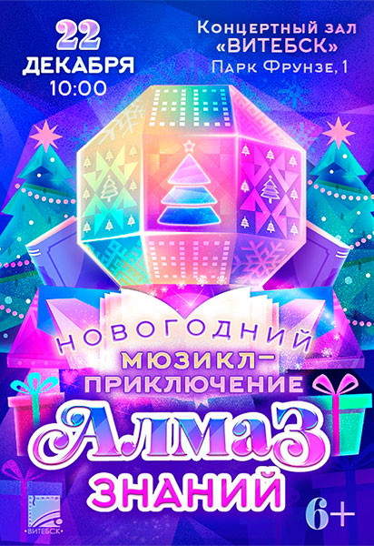 Что может случиться в самом тихом месте на Земле? Ещё и в канун Нового года! Конечно же, мы говорим о библиотеке. Этой зимой вас ожидает настоящее книжное приключение вместе с героями нашей невероятной истории «АЛМАЗ ЗНАНИЙ». Герои новогоднего мюзикла приглашают вас в ЦК "Витебск" ежедневно в 10 и 12.30.