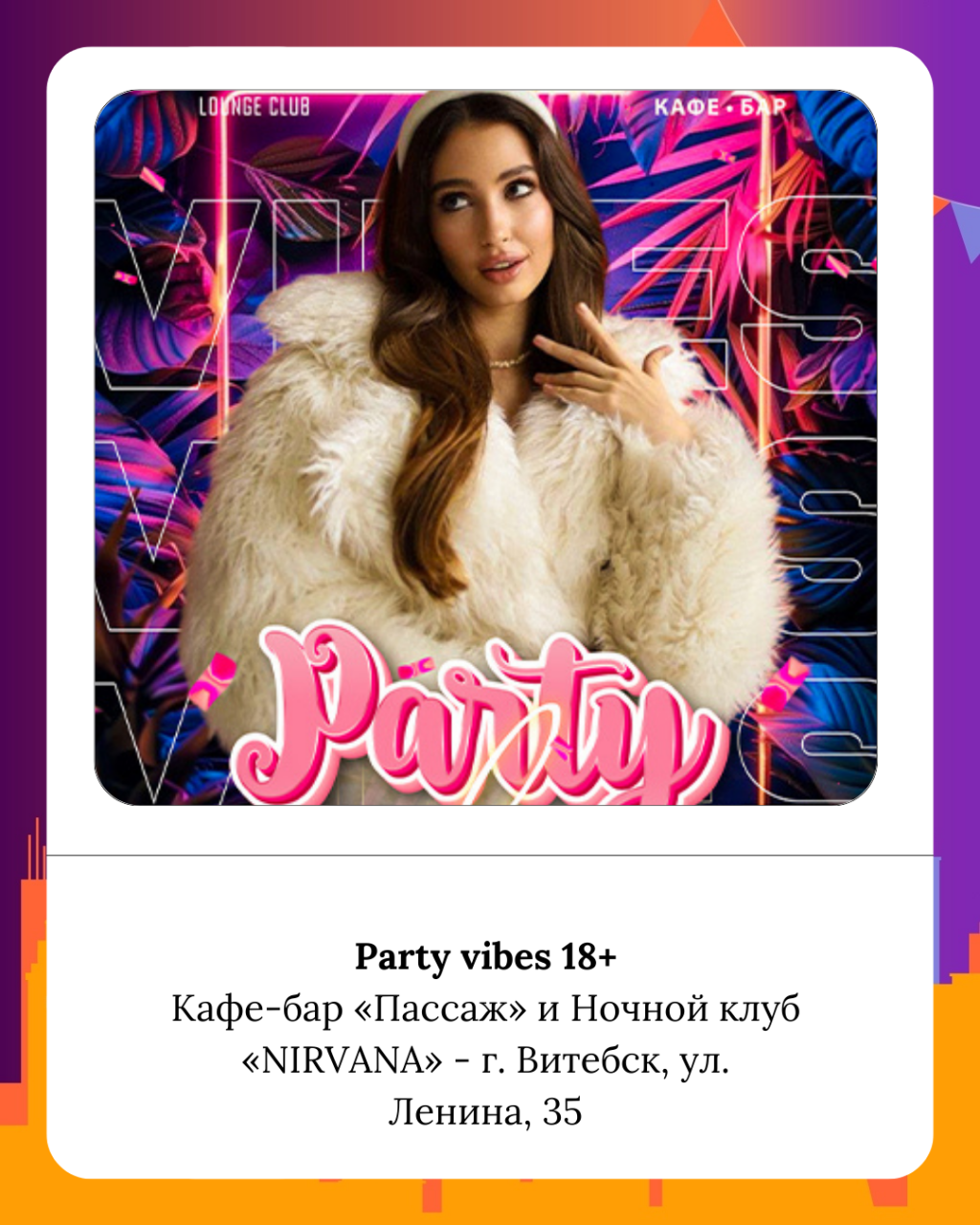 Витебск умеет превращать даже будни в праздник: вечеринки в рабочие дни помогают сбросить усталость и зарядиться энергией. Короткая неделя — отличный повод выйти вечером в город, встретиться с друзьями и почувствовать приближение новогоднего веселья.