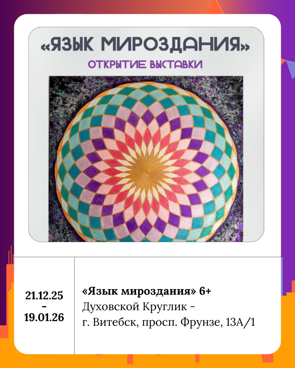 В Духовском Круглике открылась персональная выставка художницы YANTRA (Яны Бин) «Язык мироздания». Этот проект представляет собой глубокое художественное исследование сакральной геометрии как универсального кода, общего для культур древности и современности.