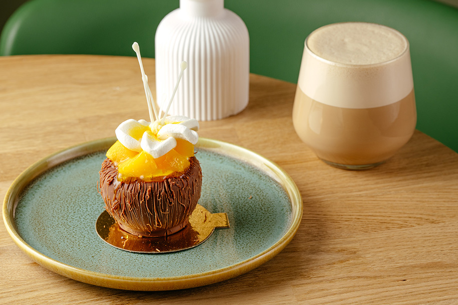 - Тропический латте с хрустящей пенкой (которая приятно ломается под ложечкой, раскрывая тропический рай), 450 мл