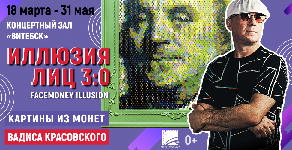 В концертном зале «ВИТЕБСК» расположилась персональная выставка картин из монет «ИЛЛЮЗИЯ ЛИЦ 3:0» художника Вадиса КРАСОВСКОГО, которая будет работать по 31 мая.