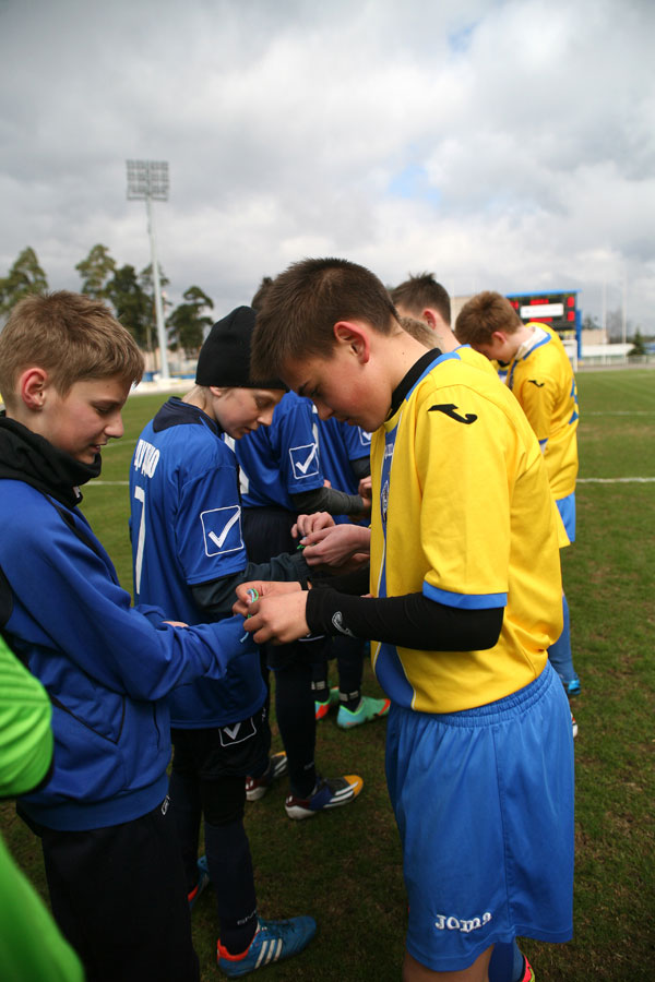 Перед матчем ребята из команды «БАТЭ» пригласили своих сверстников присоединиться к международному движению «Футбол для Дружбы»: соперники обменялись Браслетами дружбы – как символами того, что участники матча готовы стать друзьями и поддержать ключевые ценности проекта – толерантность и дружбу между представителями разных стран.