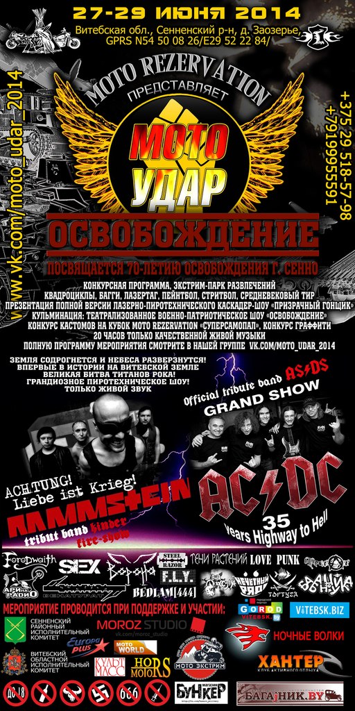 МОТО УДАР 2014 "Освобождение" проводится с 27 по 29 июня 2014 года. Посвящается 70-летию освобождения Беларуси от немецко-фашистских захватчиков.