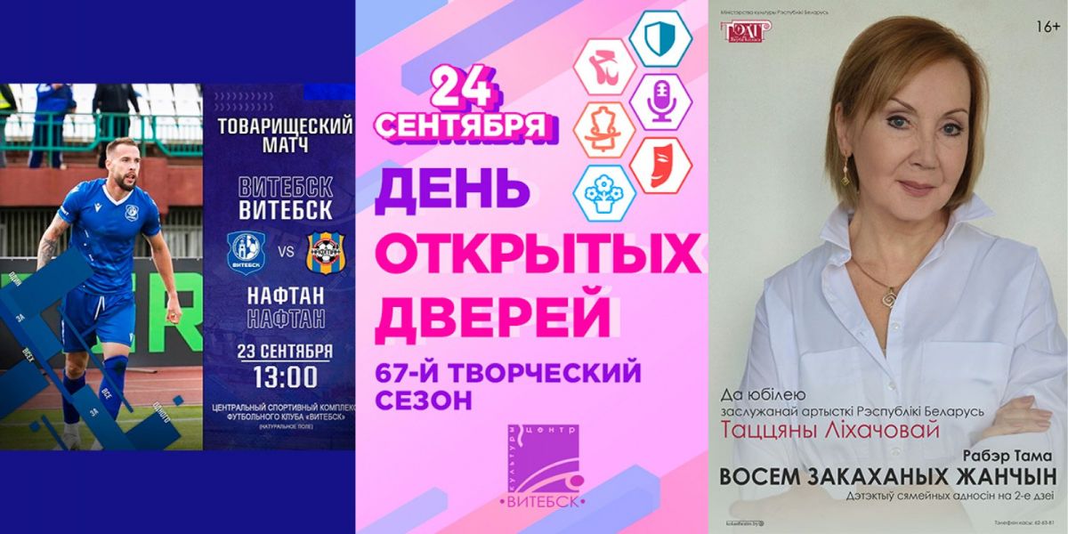 Куда сходить в Витебске на выходных с 23 по 25 сентября