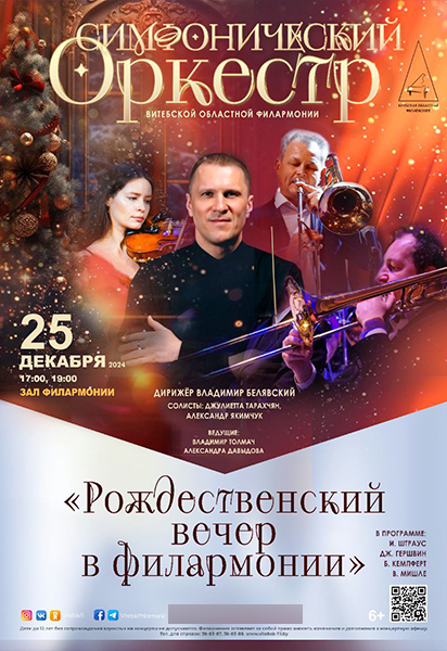 «Рождественский вечер в филармонии» пройдет в среду в 17.00 и в 19.00, а в четверг - ЦИКЛ ЛЕКЦИЙ-КОНЦЕРТОВ «AD LIBITUM» «АЛЕКСАНДР БЛОК» 6+.