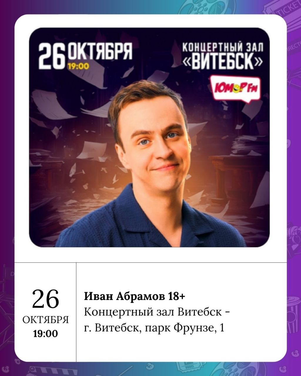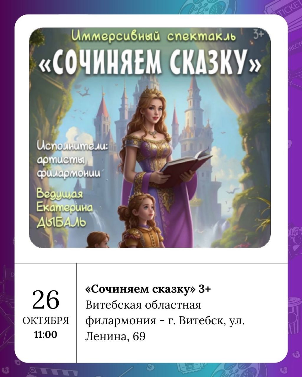 Пятница пришла, а с ней и повод вырваться из рутины! Вот куда можно сходить в Витебске с 24 по 26 октября, чтобы зарядиться впечатлениями.