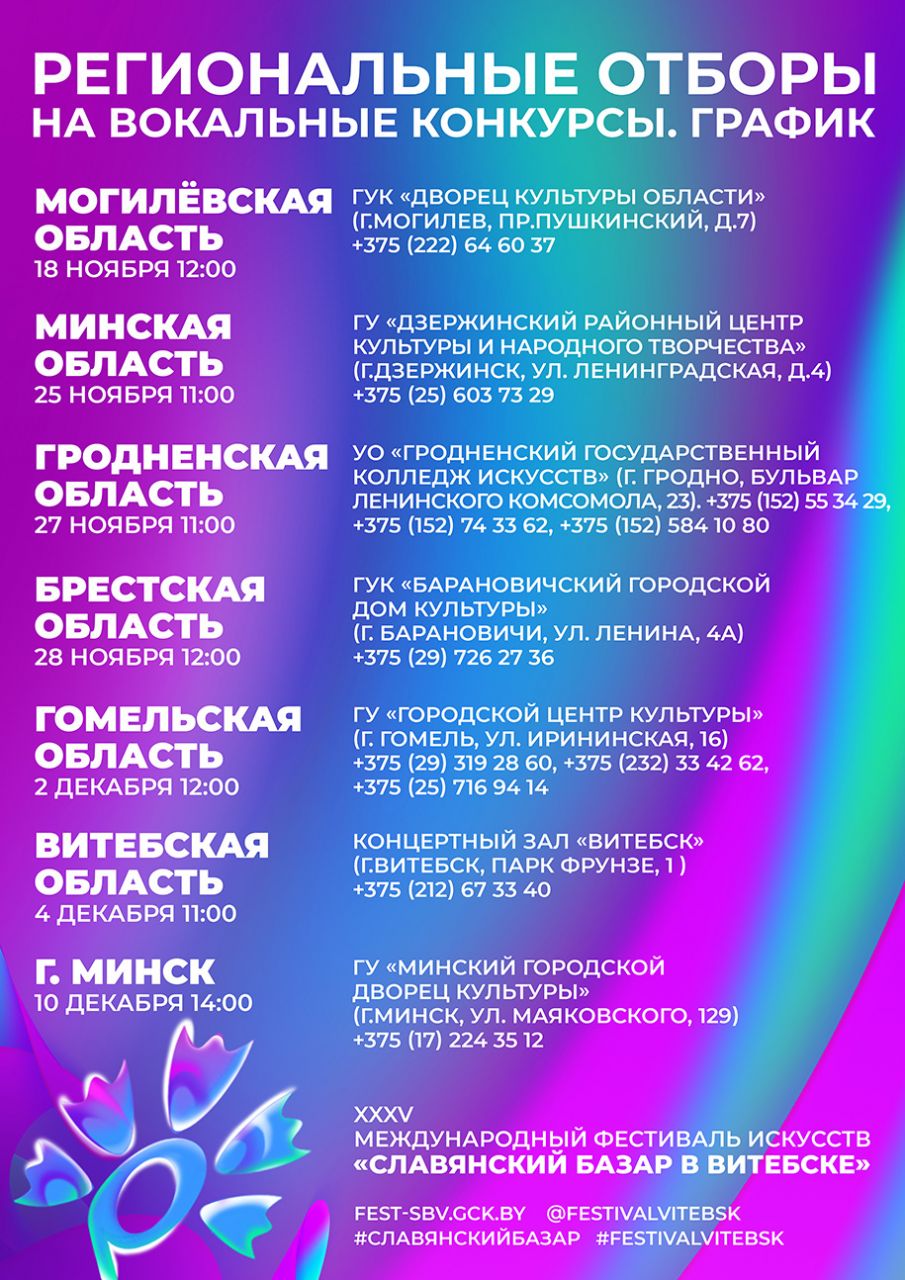 Старт региональных отборов к конкурсам «Славянский базар в Витебске» уже 18 ноября!