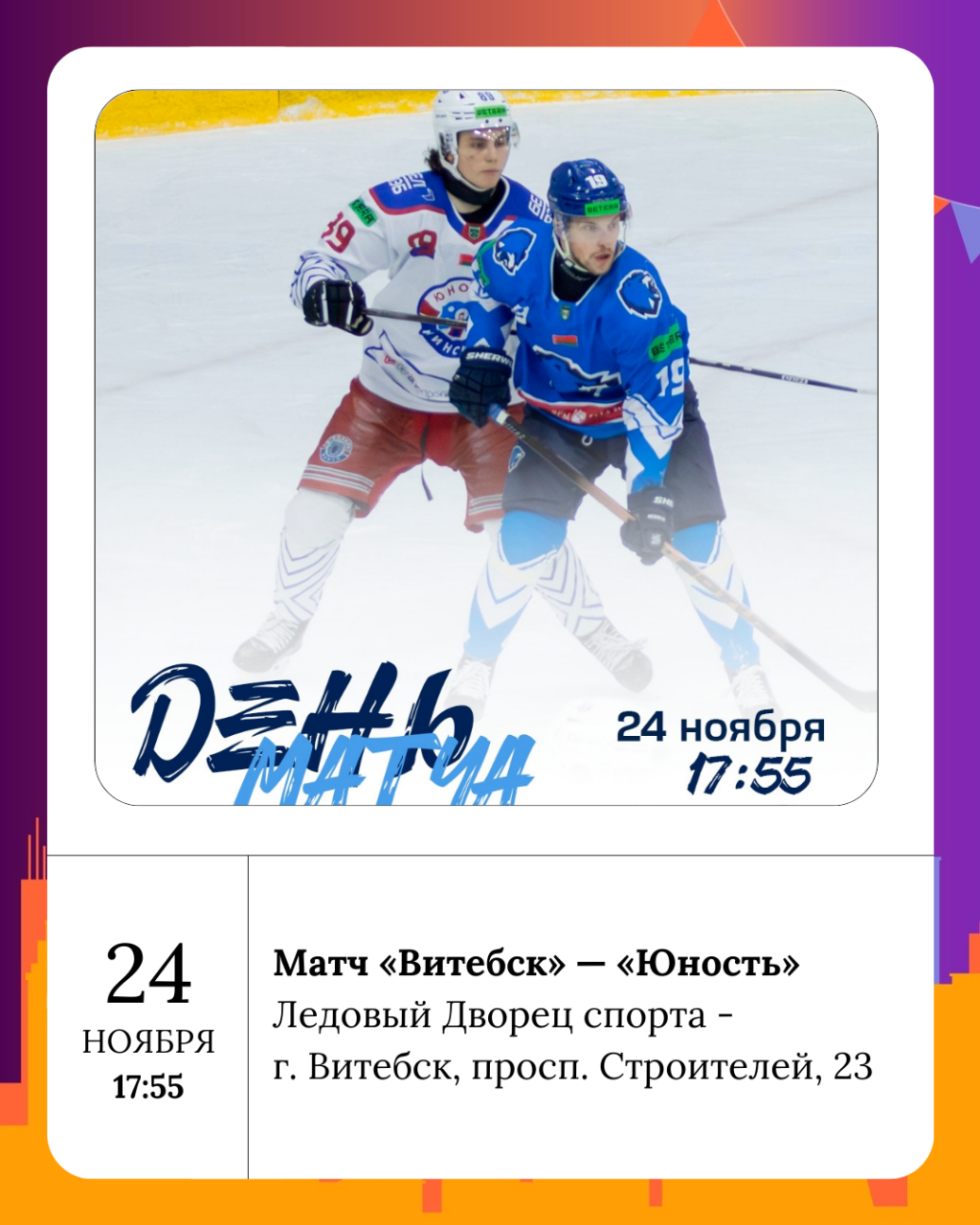 «Витебск» сыграет с «Юностью» Ледовом Дворце спорта сегодня, 24 ноября. Болеем за наших!