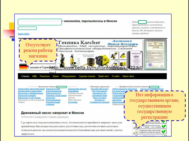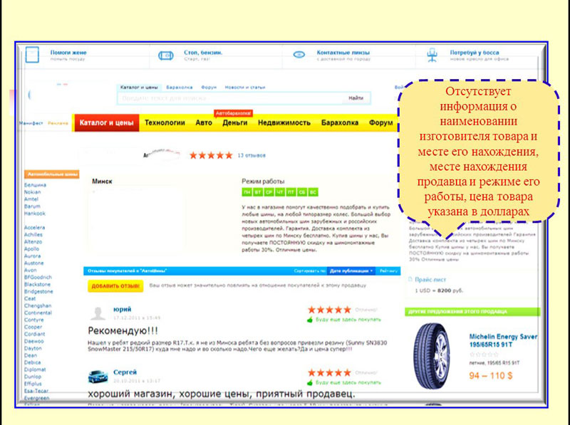 - отсутствие информации о наименовании изготовителя товара и месте его нахождения, месте нахождения продавца и режиме его работы.