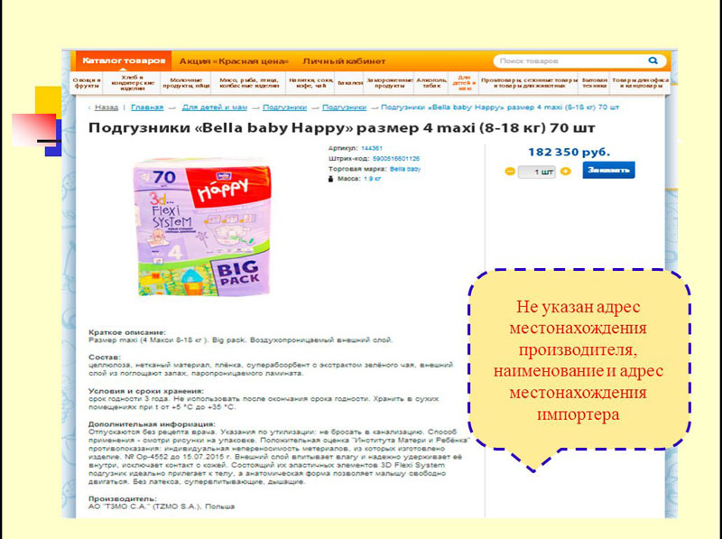 - отсутствие адреса местонахождения производителя, наименования и адреса местонахождения импортера;