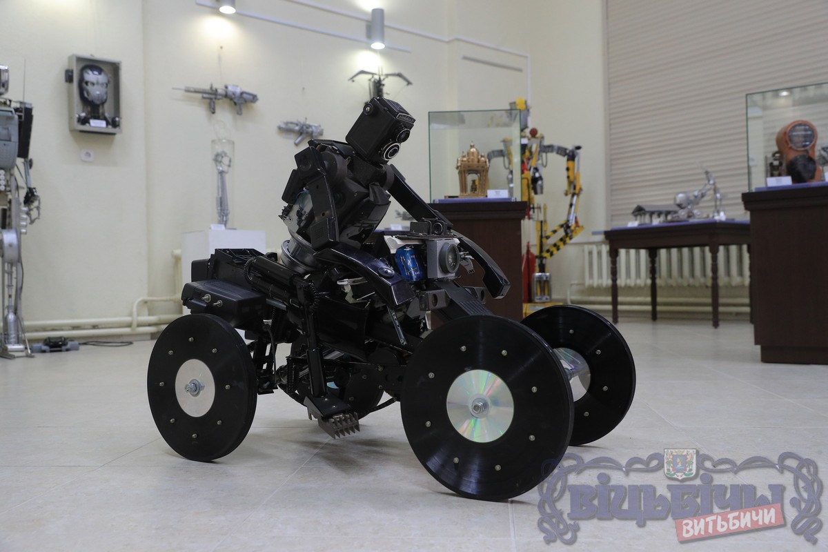 Всего представлено около 70 моделей «железных товарищей» - разных форм, размеров и конструкций. Объединяет все эти машины то, что они созданы из бытовой техники. Стационарные телефоны, виниловые пластинки, пылесосы, старые стиральные машины, фотоаппараты в умелых руках мастера превратились в составные части роботов.