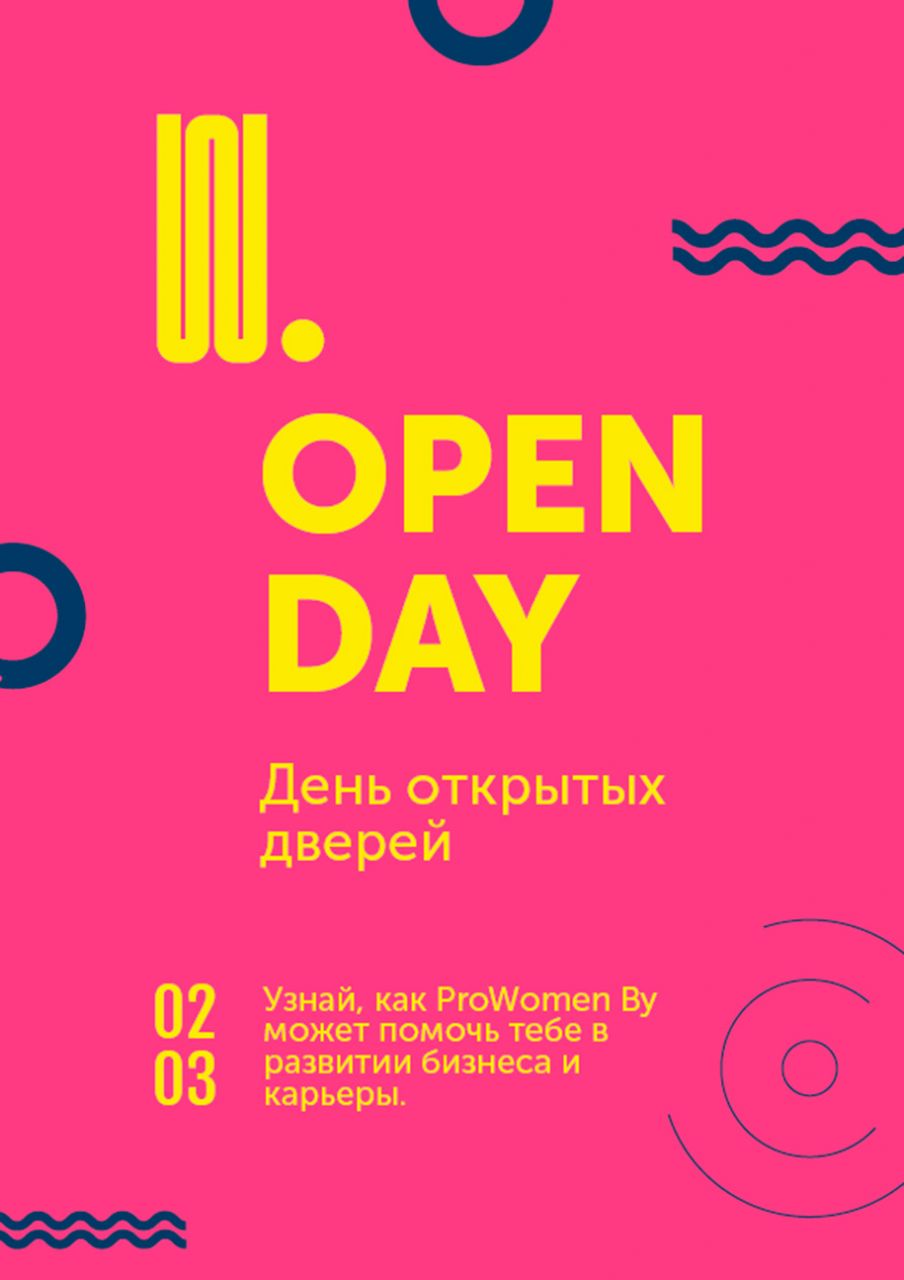 День открытых дверей в ProWomen By — это возможность узнать больше о том, как организация, поддерживающая предпринимательниц, может помочь именно тебе в создании и развитии бизнеса, карьеры. Приглашаем 2 марта принять участие в Open Day, на котором ты узнаешь о бесплатных программах и возможностях ProWomen By, которые помогут развить личный бренд, получить опыт публичных выступлений, найти клиентов и наладить нужные деловые связи.