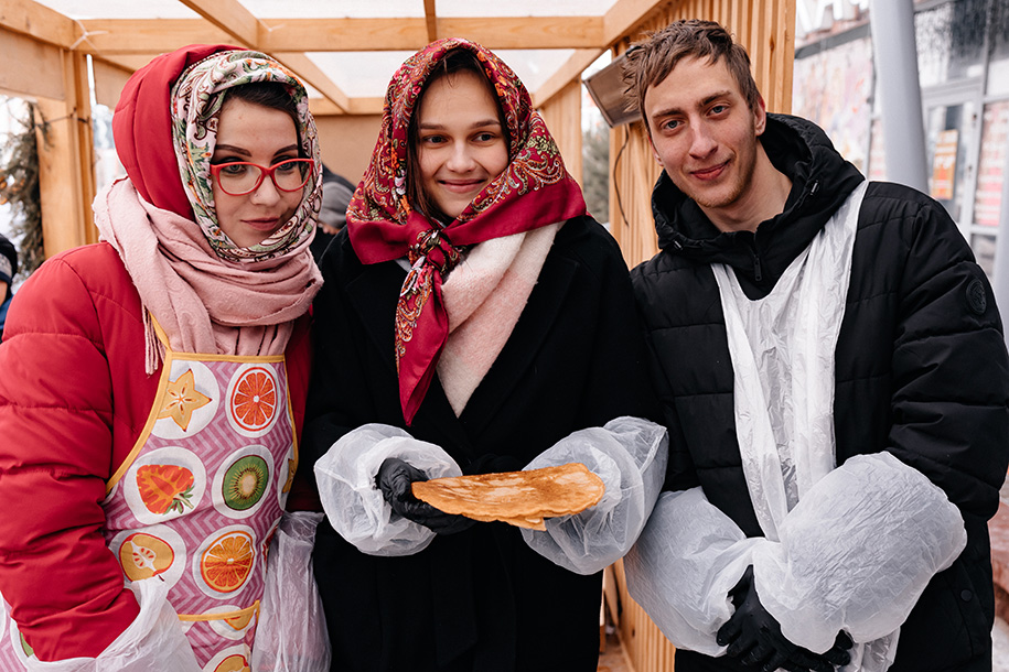 На праздник пришло несколько тысяч человек – в основном, семьи с детьми. К столам с угощениями быстро выстроились очереди. На месте начиняли блины икрой, сыром, рыбными и сладкими начинками. И раздавали их желающим без каких-либо условий.