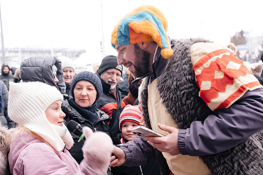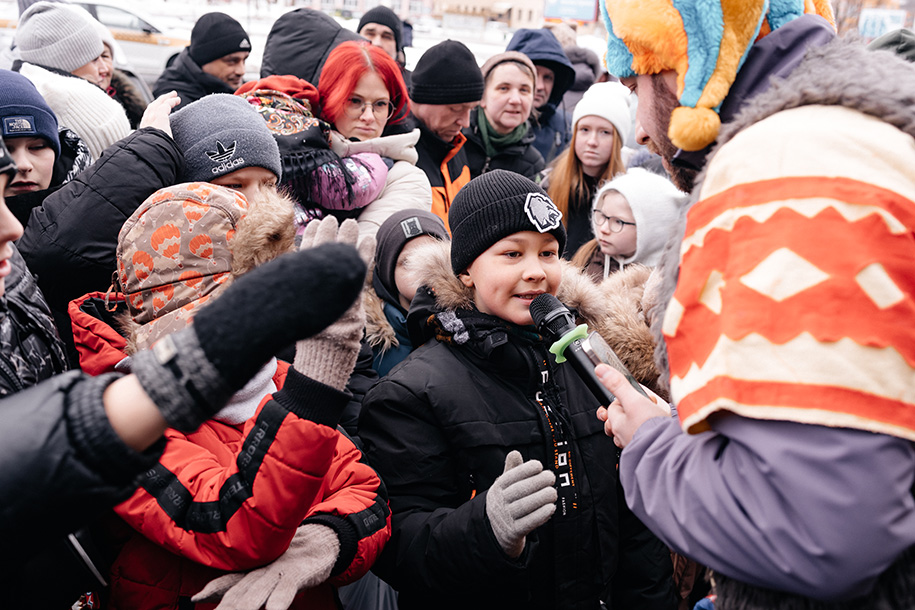 Праздничное настроение создавали ведущий, диджей и аниматоры. Прошли и конкурсы с подарками: например, нужно было подкинуть и перевернуть муляж большого блина.