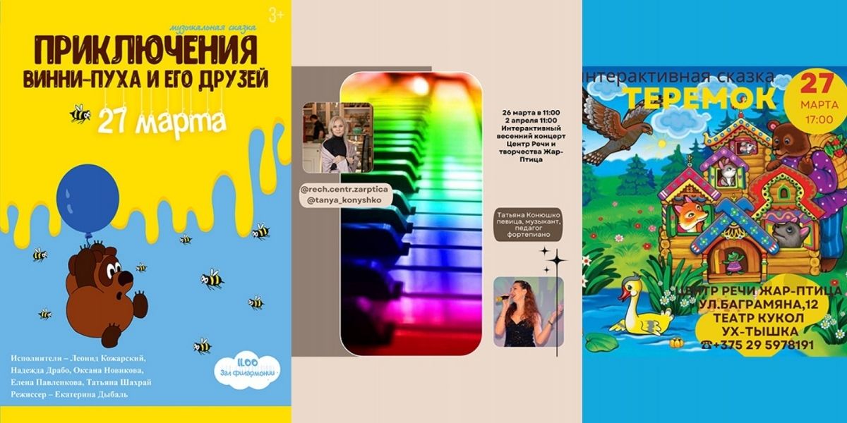 Семейный центр Жар Птица 26 марта в 11.00 приглашает на интерактивный весенний концерт. Для детей от года и старше и их родителей. А в воскресенье в 17.00 состоится интерактивная сказка «Теремок».