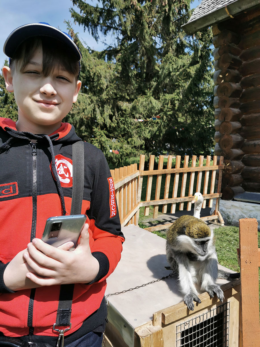 Гостем у Мамонта стала также веселая обезьянка, у которой можно было взять интерьвью, а также веселые гуси из витебского зоопарка.