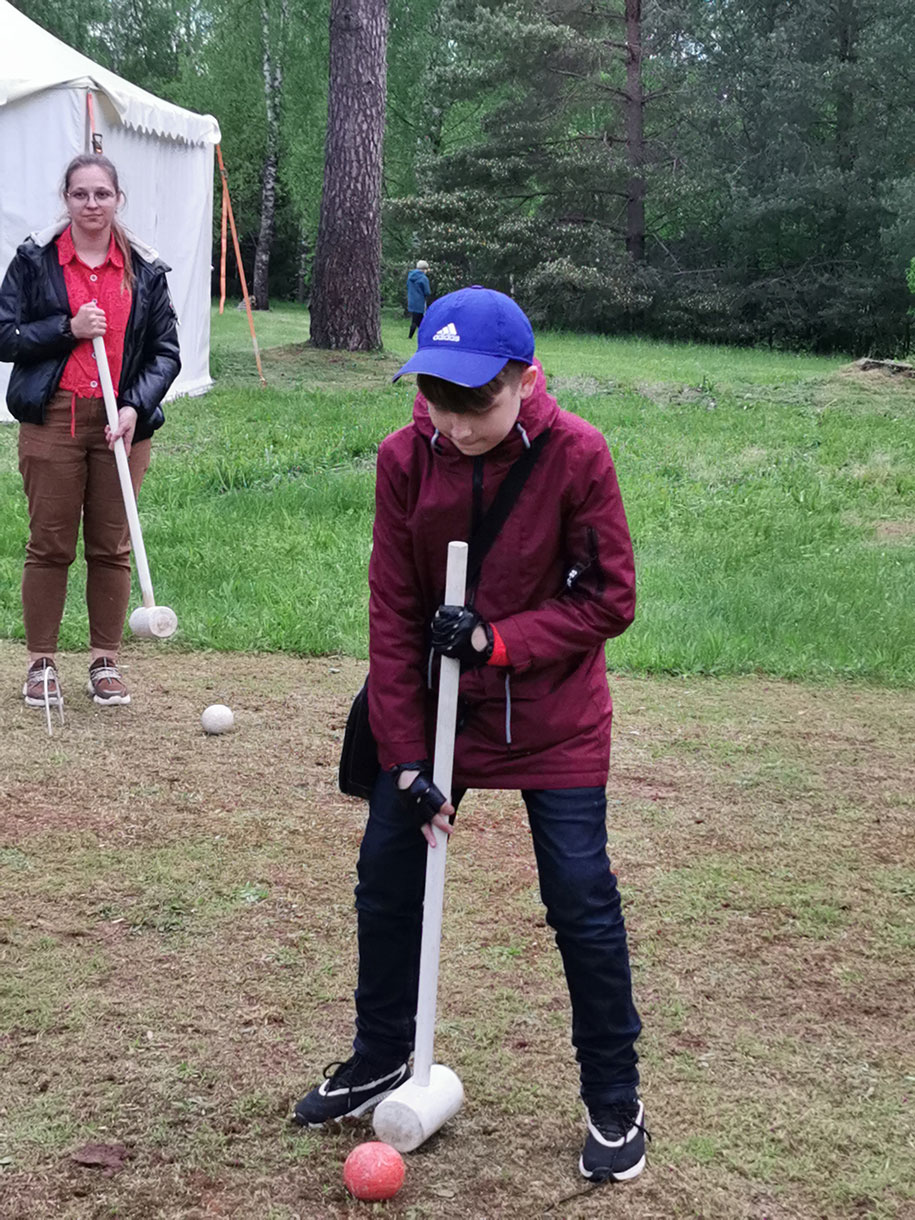 Веселые конкурсы и развлечения никого не оставили в стороне. Нужно было провести раскопки, чтобы отыскать мамонта в песочнице, накинуть кольца на бивни мамонта, произвести поиск различных предметов... Можно было поиграть в крокет.